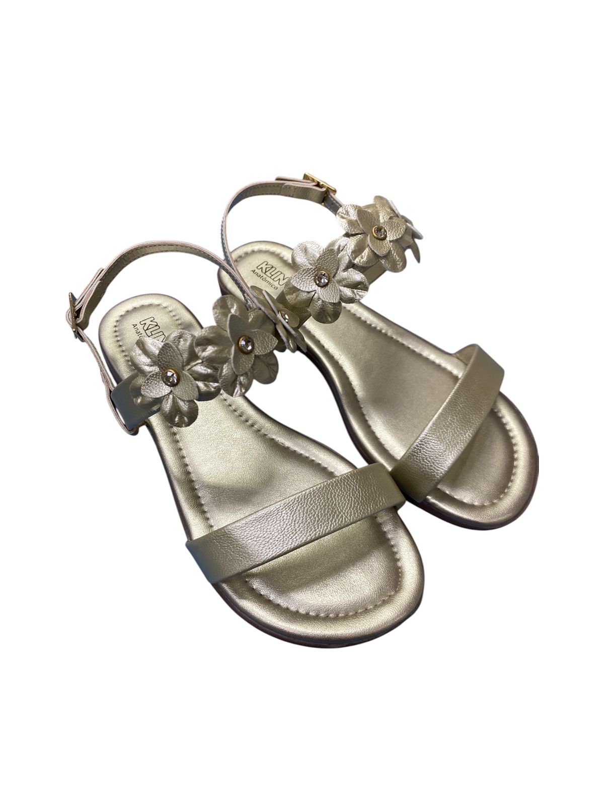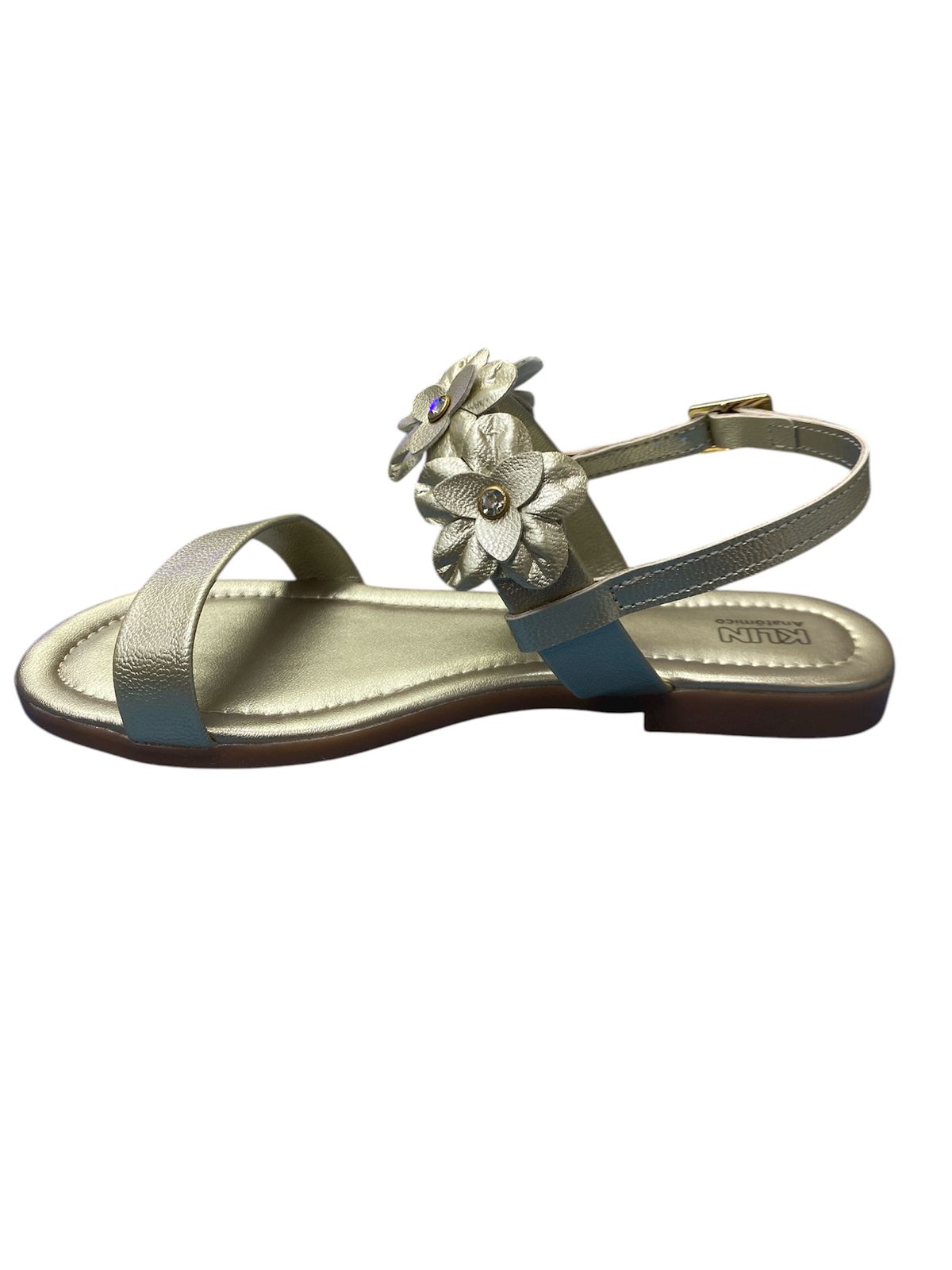 Delicada e charmosa, a sandália Klin dourada é perfeita para ocasiões especiais e para deixar o look das pequenas ainda mais elegante. Possui detalhe em flor aplicada na tira frontal, fechamento com fivela ajustável e solado que garante conforto e segurança ao caminhar.